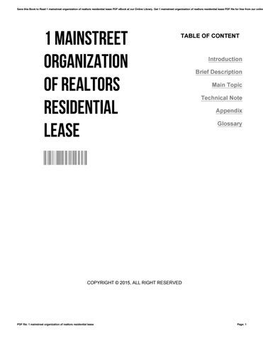 [UniqueID] - Read Online 1 MAINSTREET ORGANIZATION OF REALTORS RESIDENTIAL... PDF